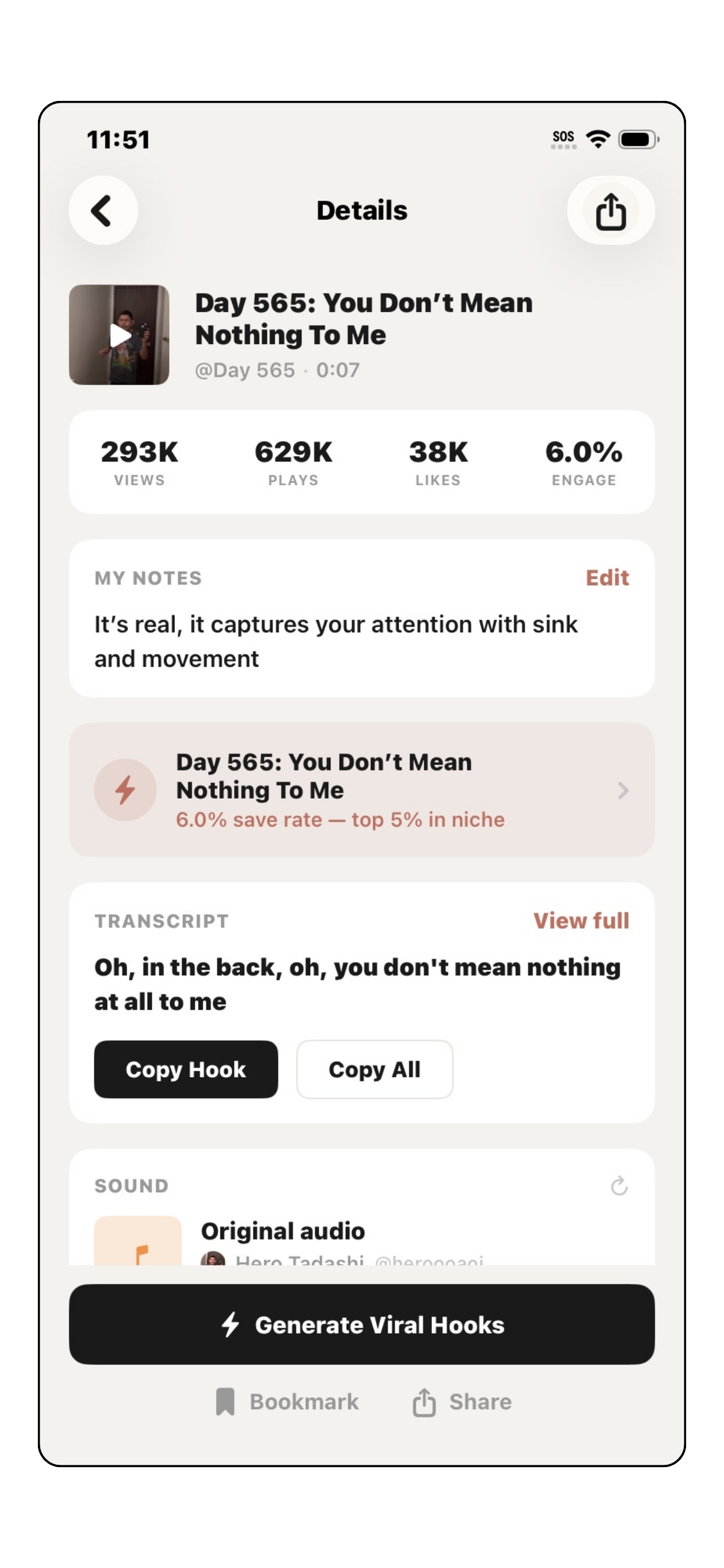 Hooks and CTAs auto-extracted and searchable
